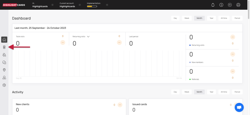2. From the list of modules, click the <img src="https://3521983700-files.gitbook.io/~/files/v0/b/gitbook-x-prod.appspot.com/o/spaces%2F0bs7G2SF7Qp4SsSMsJsJ%2Fuploads%2FKV4nxKxqiOwL4A2h84bJ%2Fspaces_0bs7G2SF7Qp4SsSMsJsJ_uploads_g1uc5uI8lf9jdTM9Be52_image.webp?alt=media&#x26;token=96bc352d-ebbd-4f9f-8757-4413828d9ea0" alt="" data-size="line">icon. Doing so opens the Cards module.