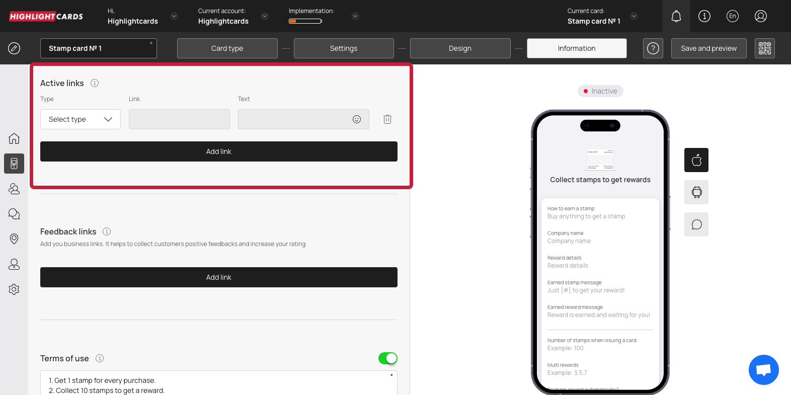 This option allows you to link a coupon to another loyalty card template (stamp card, rewards card, etc.).\