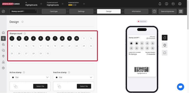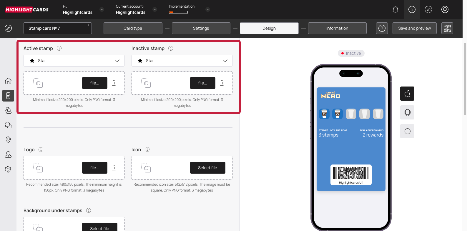 4. Similarly, use the **Inactive Stamp** dropdown to choose the icon representing an inactive stamp.