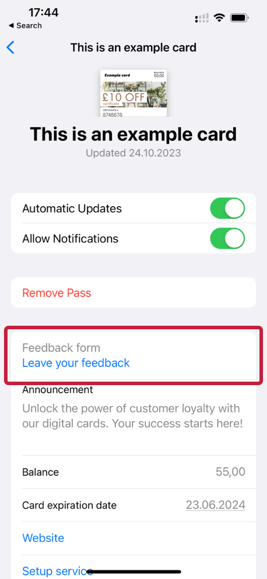 3. From the list of options, tap Pass Details. This opens the details of the selected pass.